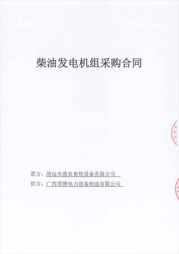 2020年12月31日,在這2020年的最后一天,廣西頂博電力設(shè)備制造有限公司再度傳來(lái)好消息,頂博電力與清遠(yuǎn)市鼎農(nóng)畜牧設(shè)備有限公司成功簽訂兩臺(tái)柴油發(fā)電機(jī)組,分別是50KW玉柴柴油發(fā)電機(jī)組一臺(tái)和100KW玉柴柴油發(fā)電機(jī)組一臺(tái)。