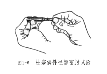 柱塞偶件徑部密封性試驗(yàn)一般應(yīng)在密封試驗(yàn)臺(tái)上進(jìn)行。為方便起見(jiàn),用戶也可用簡(jiǎn)易密封比較法。首先使柱塞斜槽使用段對(duì)準(zhǔn)回油孔位置,再用手指堵住柱塞套大端面孔及另一只進(jìn)油孔,然后慢慢地將信塞推進(jìn),當(dāng)柱塞端面到達(dá)回油孔上邊緣(即蓋沒(méi)油孔)時(shí)觀察回油孔。不應(yīng)有油沫及氣泡冒出,如圖1-6所示,不符合要求為不合格。