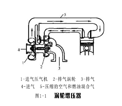 渦輪增壓器是一種利用排氣而不是發(fā)動(dòng)機(jī)動(dòng)力推動(dòng)空氣泵或壓氣機(jī)的裝置,由空氣泵將增多的空氣壓入汽缸。柴油和汽油發(fā)動(dòng)機(jī)上都可采用渦輪增壓器。圖1-1所示為渦輪增壓發(fā)動(dòng)機(jī)中空氣和排氣的典型簡(jiǎn)圖。高速排氣從排氣門(mén)出來(lái),穿過(guò)一個(gè)渦輪驅(qū)動(dòng)的泵,推動(dòng)排氣渦輪快速轉(zhuǎn)動(dòng),而排氣渦輪又帶動(dòng)進(jìn)氣壓氣機(jī)快速轉(zhuǎn)動(dòng)。隨著壓氣機(jī)渦輪的轉(zhuǎn)動(dòng),它吸入了大量新鮮空氣。進(jìn)氣被加壓并被壓入進(jìn)氣門(mén)。進(jìn)氣歧管中的升壓過(guò)程被稱(chēng)為增壓( Boast)。增壓可以在進(jìn)氣歧管中產(chǎn)生較高的壓力,壓力因廠家而異。