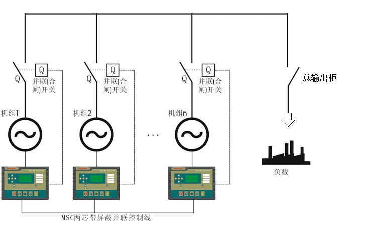 3、并機(jī)之后更具經(jīng)濟(jì)性??梢愿鶕?jù)網(wǎng)上負(fù)載的大小,投入適當(dāng)臺數(shù)的小功率機(jī)組,以減少大功率機(jī)組小負(fù)載運行帶來的燃油、機(jī)油浪費。